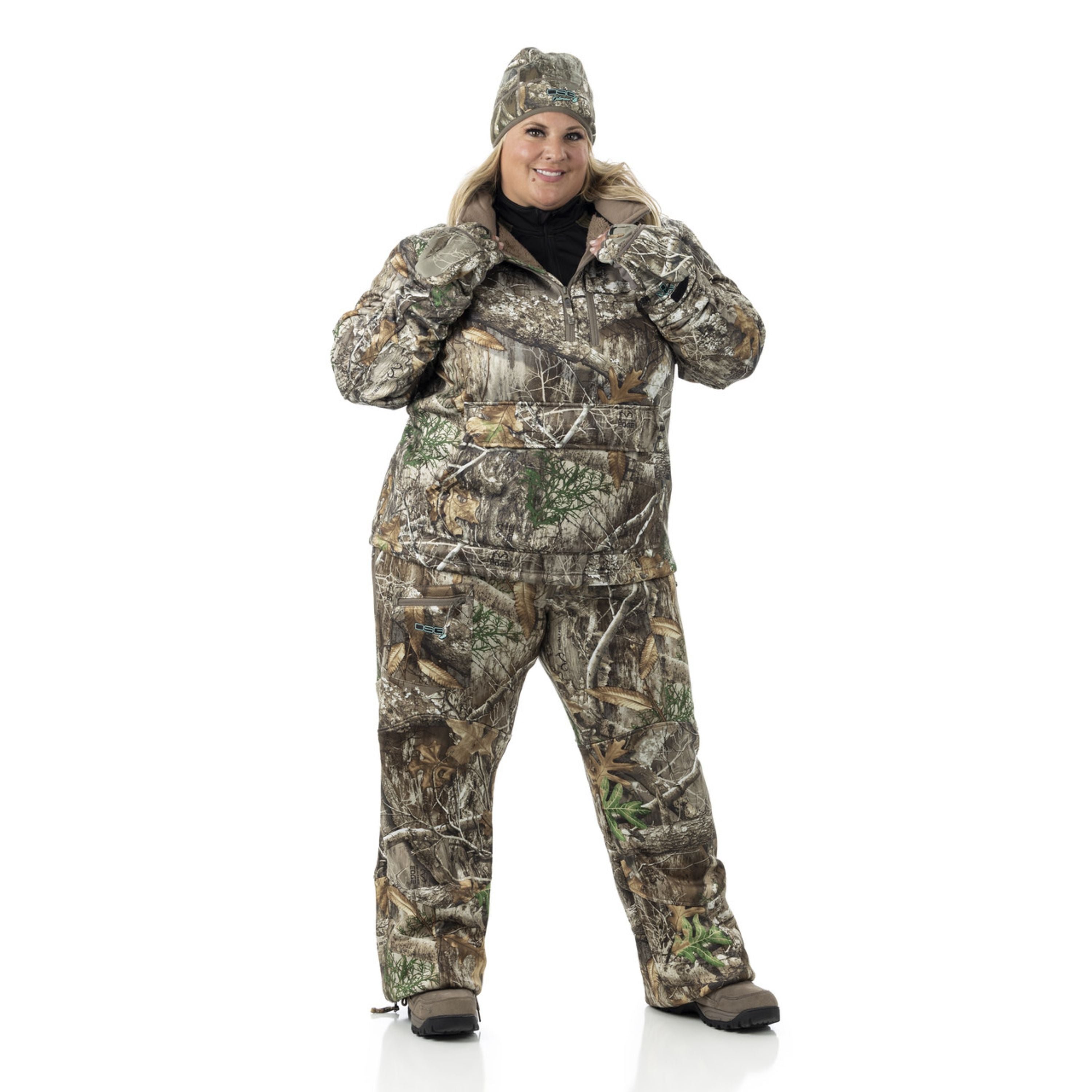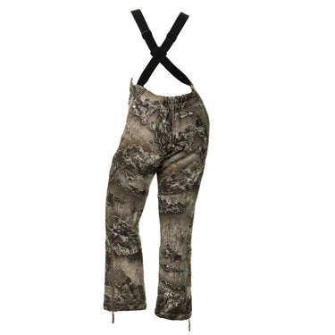 The ultimate combination of function and comfort, the Breanna 2.0 Bibs are made of a quiet, bonded stretch fabric, with a super soft sherpa interior. This fabric is DWR treated to help shed water to keep you warm and comfortable. The camouflage hunting bibs allow you to blend into your environment at close range and from a distance while the black bibs are perfect for concealing in a blind.Â